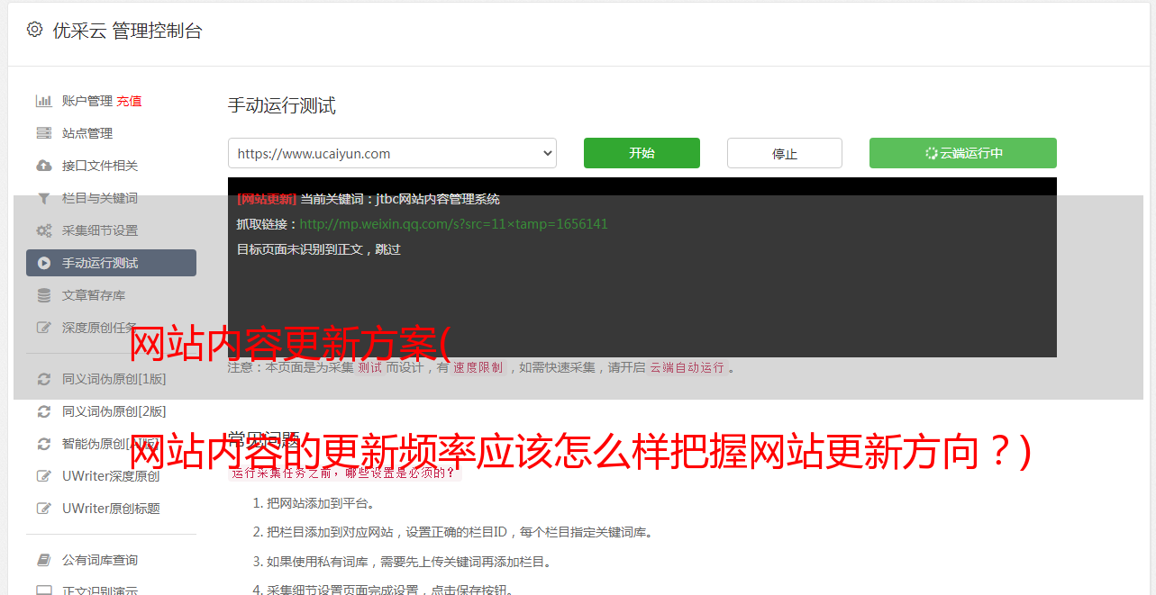 优采云 发布时间: 2021-12-01 14:04网站内容更新方案(