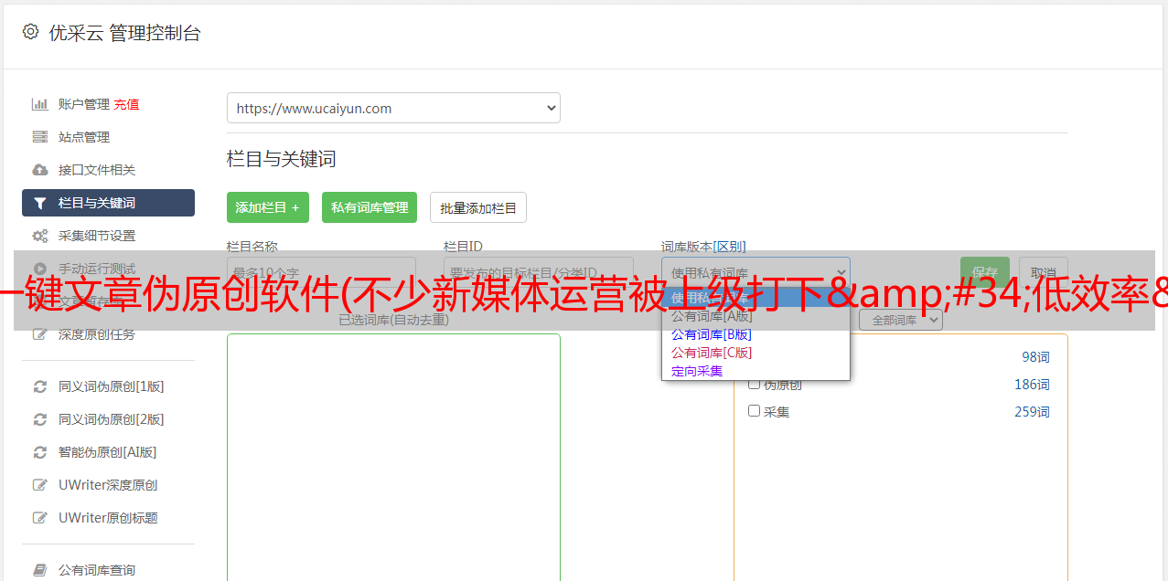 优采云采集 支持按标题、内容、时间、平台、是否原创等参数过滤,支持将文章中的所有图片和联系人保存在一张之前点击方法等广告信息一次性过滤掉,解决新媒体运营快速找素材的需求。