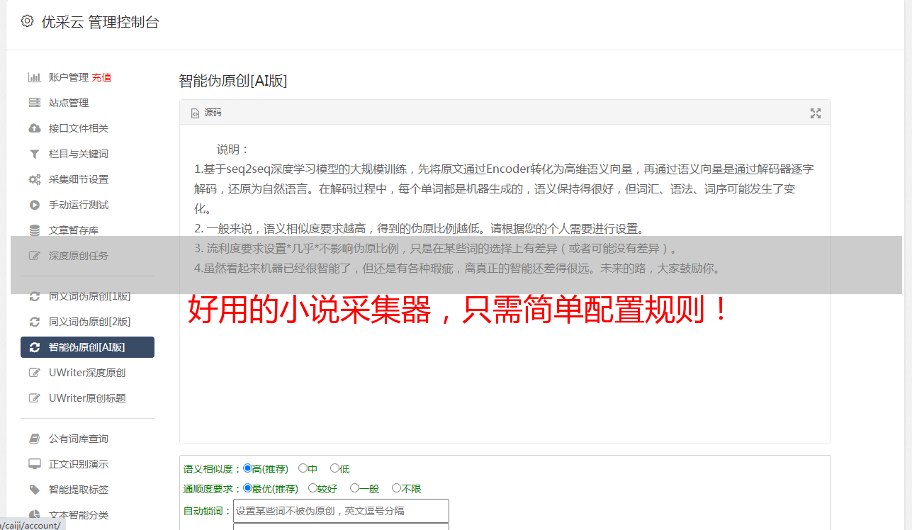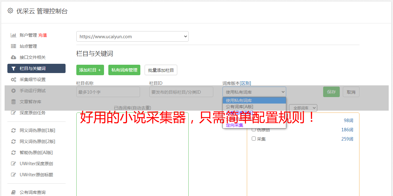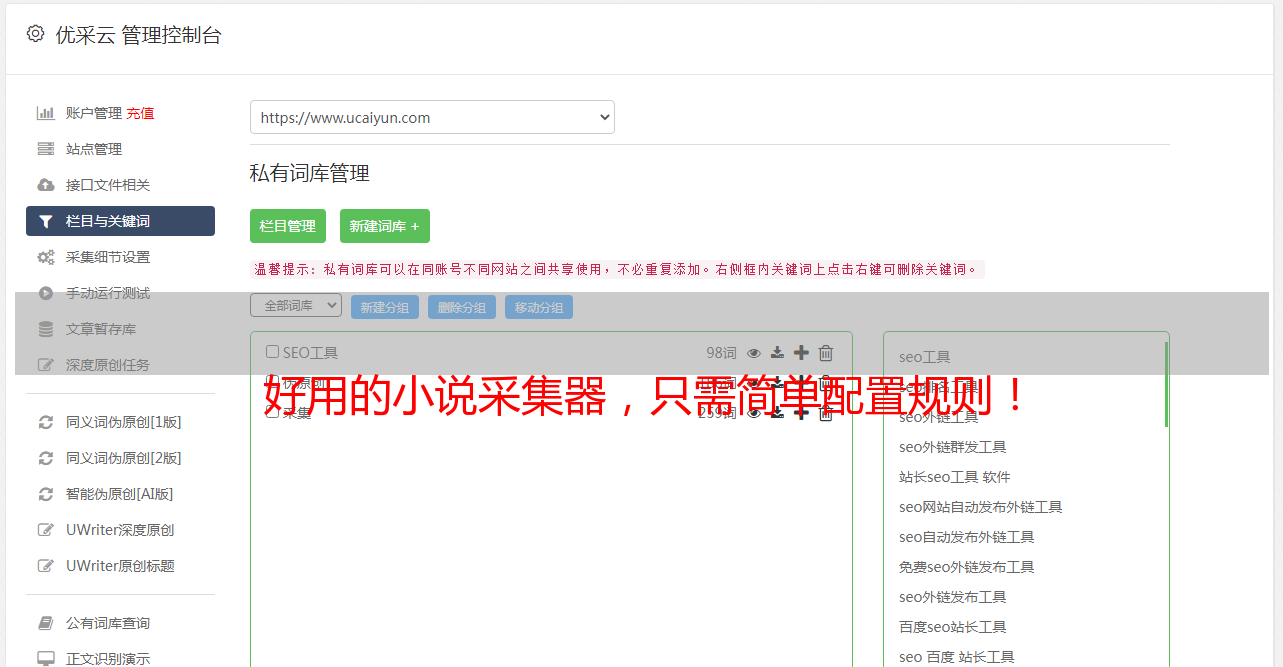 优采云·云采集服务平台小说采集器哪个易于使用?对于许多网站管理员朋友而言,对Novel 采集的需求应该更高。将采集好小说导入您自己的数据库,然后建立合适的小说网站,最后通过一系列优化方法获得SEO流量,并通过SEO流量实现它。目前,采集小说有很多平台,例如起点中文网,快乐舒克小说网等。这是一部易于使用的小说采集器。您只需配置规则即可轻松配置以上采集中的大多数内容。新颖的平台。让我们以采集起点小说为例,向您展示如何使用该小说采集的工具。 采集 网站:https:/