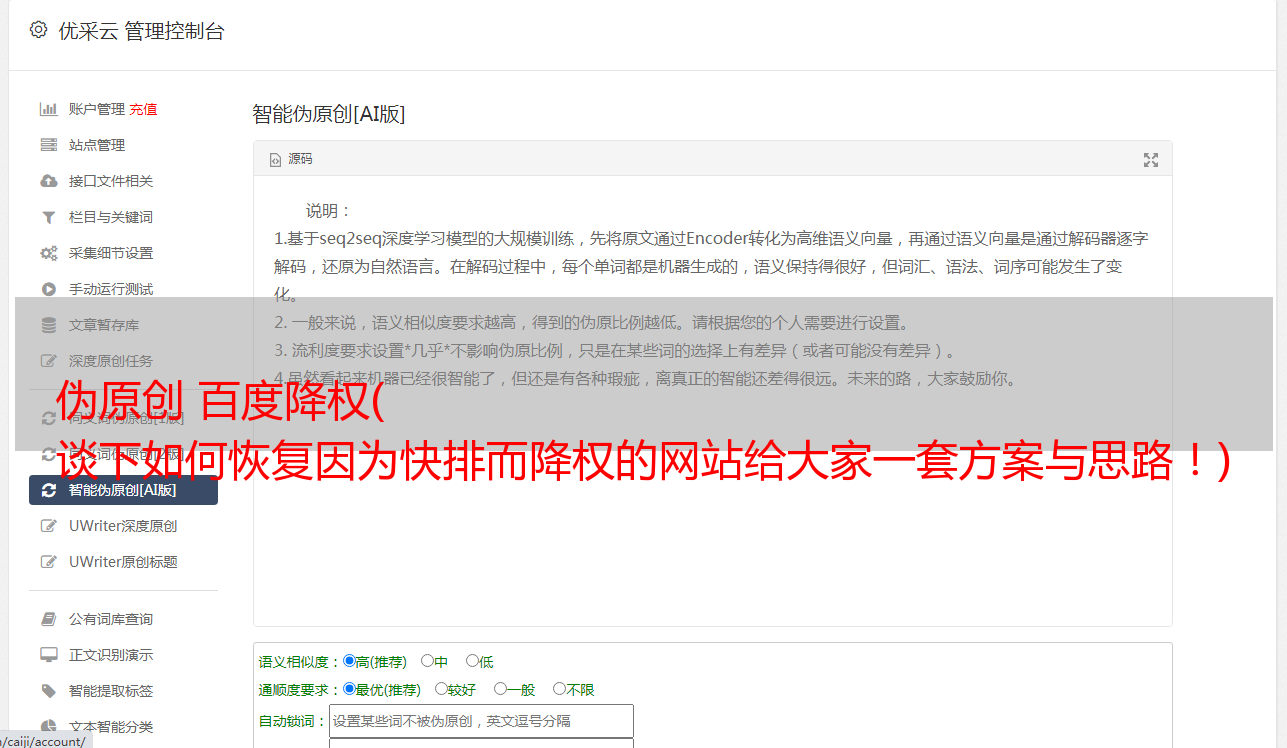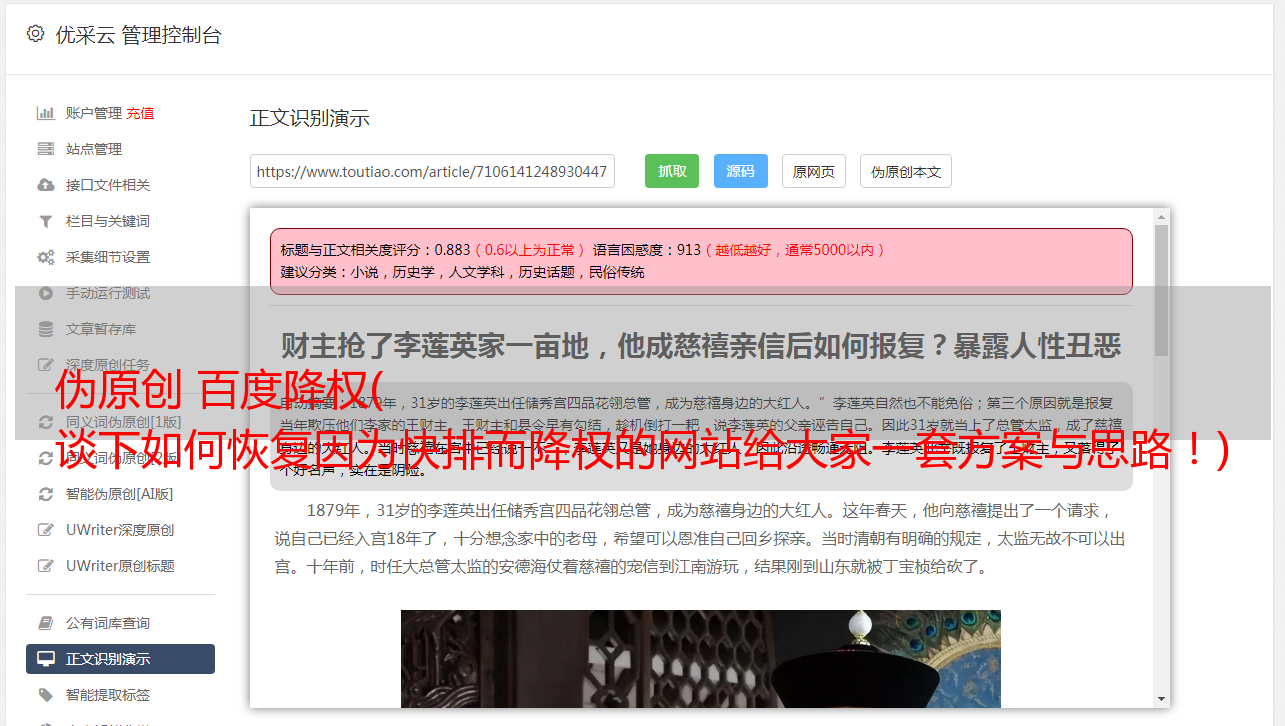 伪原创 百度降权( 谈下如何恢复因为快排而降权的网站给大家一套方案与思路!)