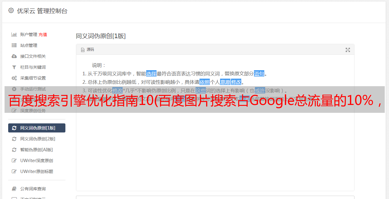 优采云 发布时间: 2021-12-02 03:07百度搜索引擎优化指南10(百度图片搜索占Google总流量的10%,位居Google第三大频道)