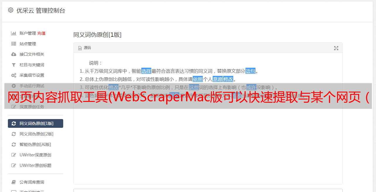 优采云 发布时间: 2021-12-02 04:05网页内容抓取工具(WebScraperMac版可以快速提取与某个网页(软件特色)