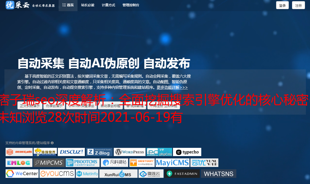 优采云 发布时间: 2021-12-02 06:30痞子瑞seo深度解析:全面挖掘搜索引擎优化的核心秘密(