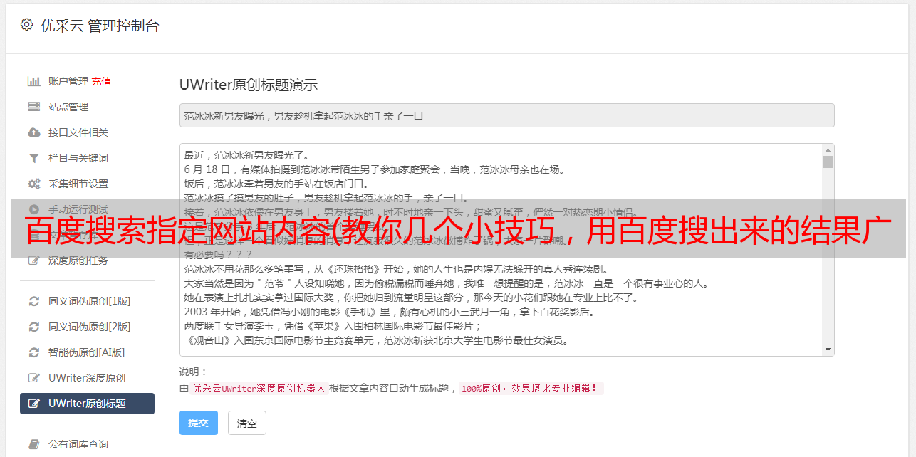 优采云 发布时间: 2021-12-02 15:02百度搜索指定网站内容(教你几个小技巧,用百度搜出来的结果广告更少)