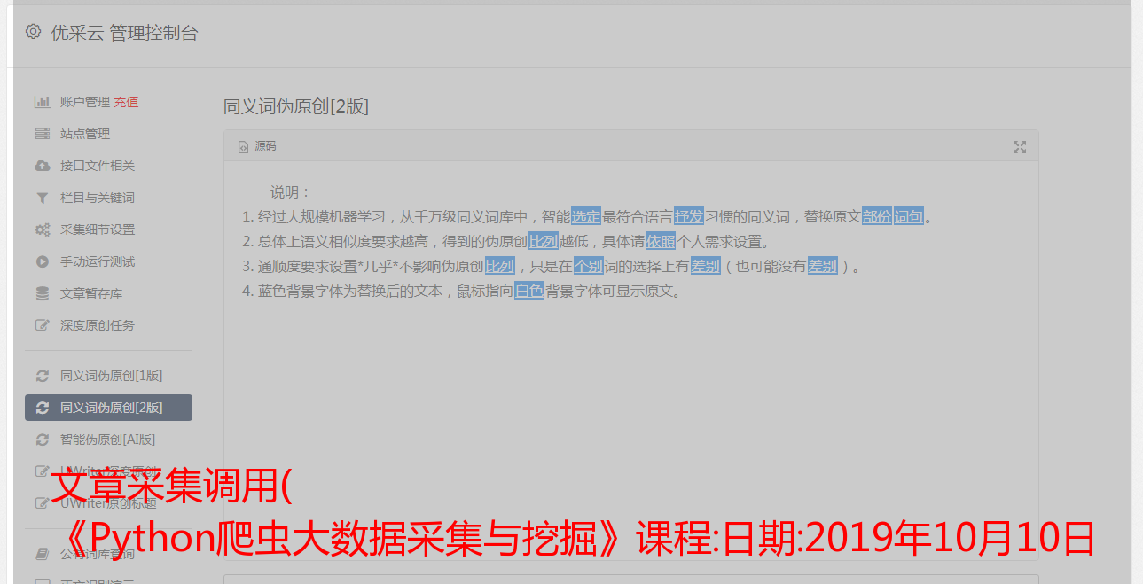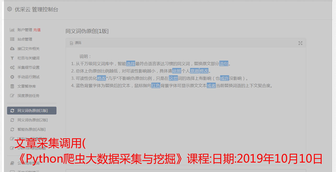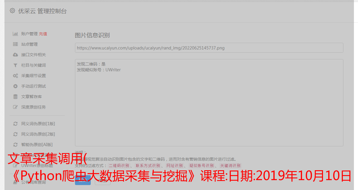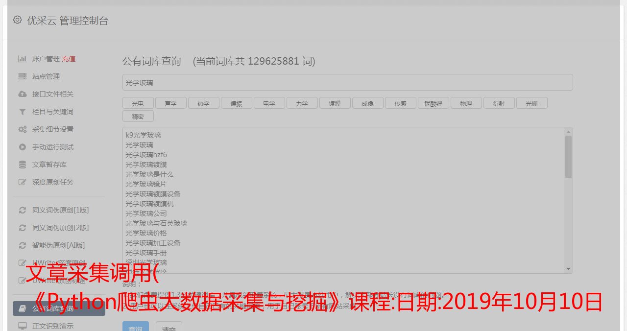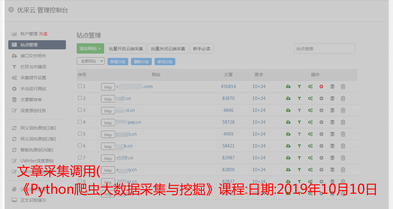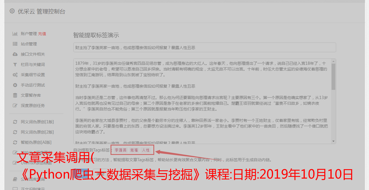 文章采集调用( 《Python爬虫大数据采集与挖掘》课程:日期:2019年10月10日 )
