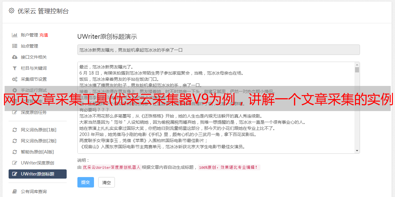 网页文章采集工具(优采云采集器V9为例,讲解一个文章采集的实例(组图))