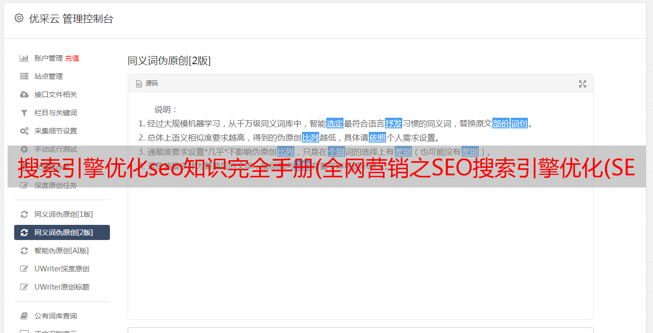 优采云 发布时间: 2021-12-04 10:22搜索引擎优化seo知识完全手册(全网营销之SEO搜索引擎优化(SEO)知识完全手册(组图))