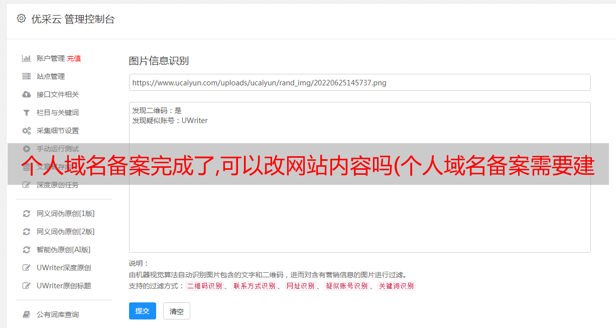 优采云 发布时间: 2021-12-04 12:18个人域名备案完成了,可以改网站内容吗(个人域名备案需要建设网站吗?好用的建站系统)