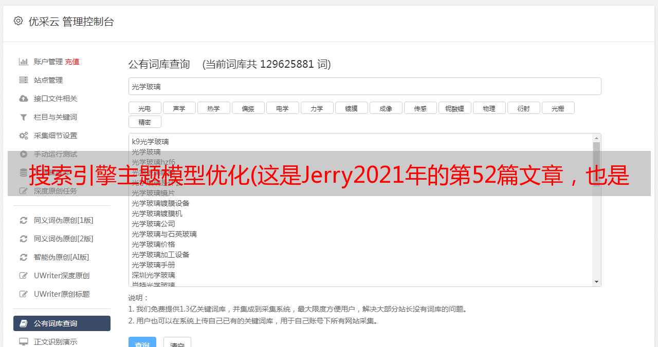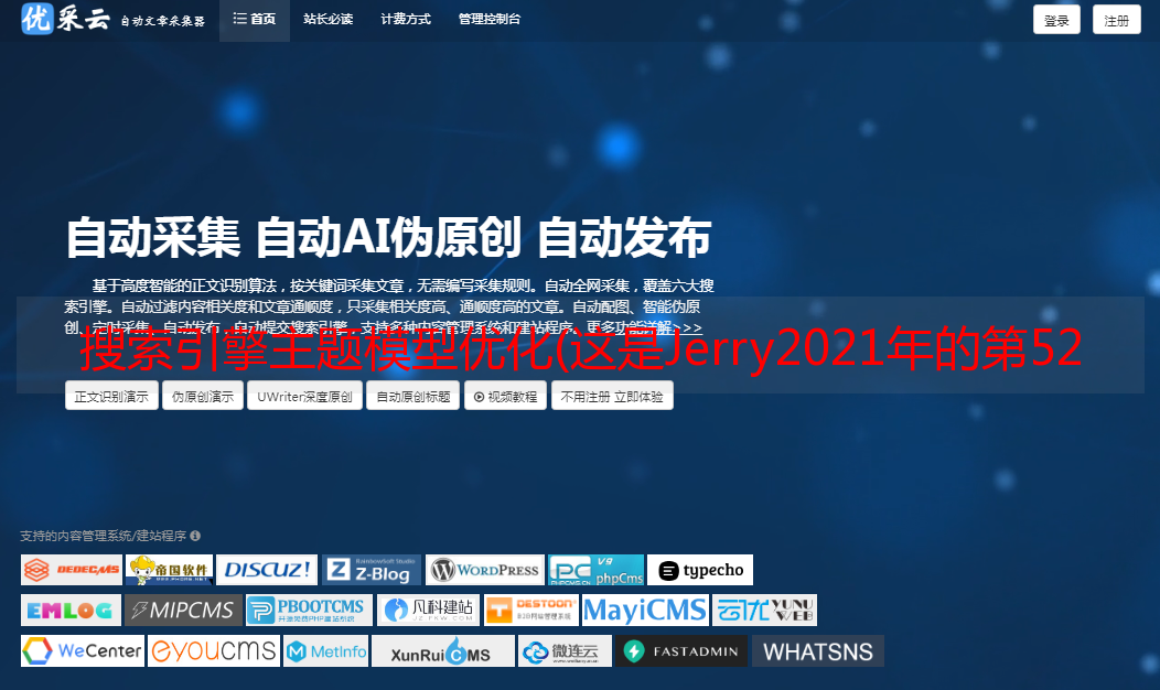 优采云 发布时间: 2021-12-04 13:13搜索引擎主题模型优化(这是Jerry2021年的第52篇文章,也是汪子熙公众号)
