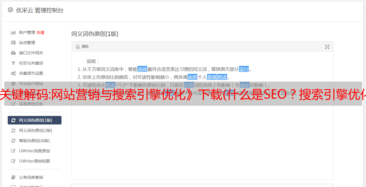 优采云 发布时间: 2021-12-04 18:04《seo关键解码:网站营销与搜索引擎优化》下载(什么是SEO?搜索引擎优化(SearchEngineOptimizationOptimizationFriendly))