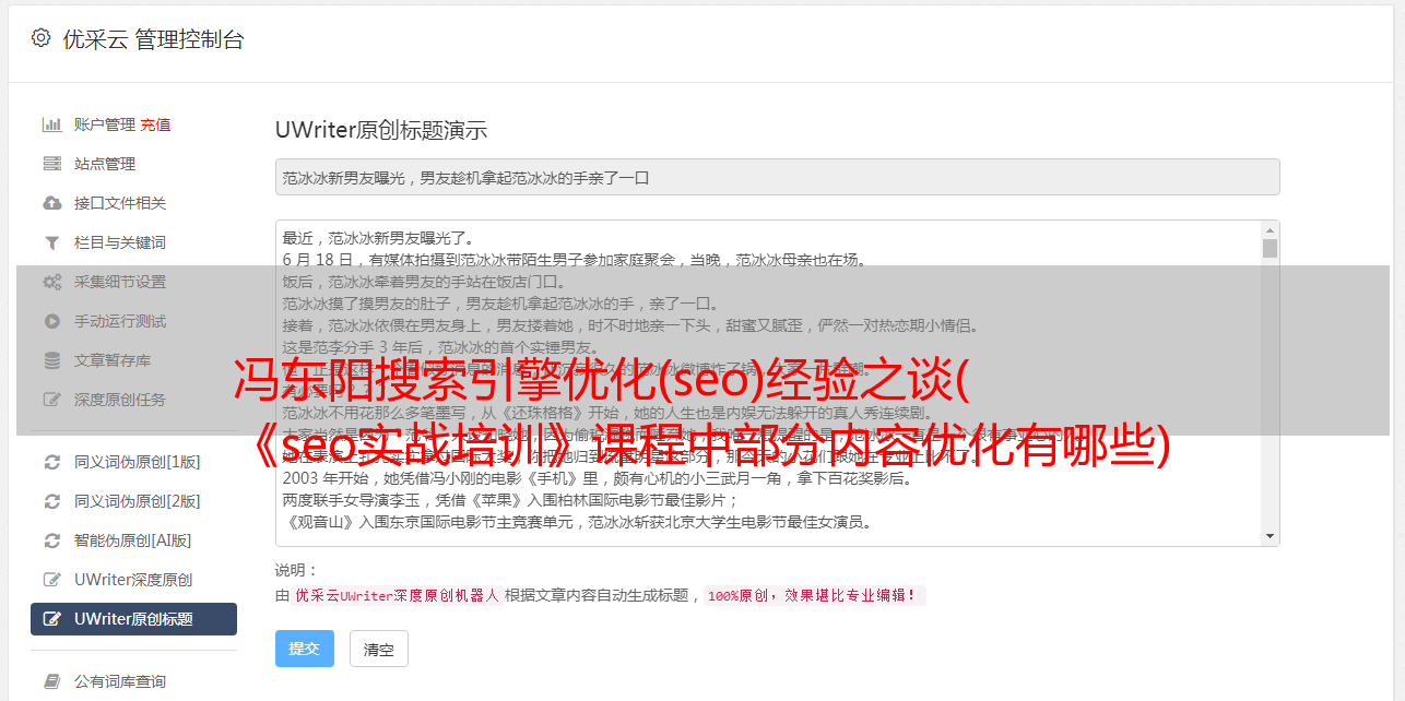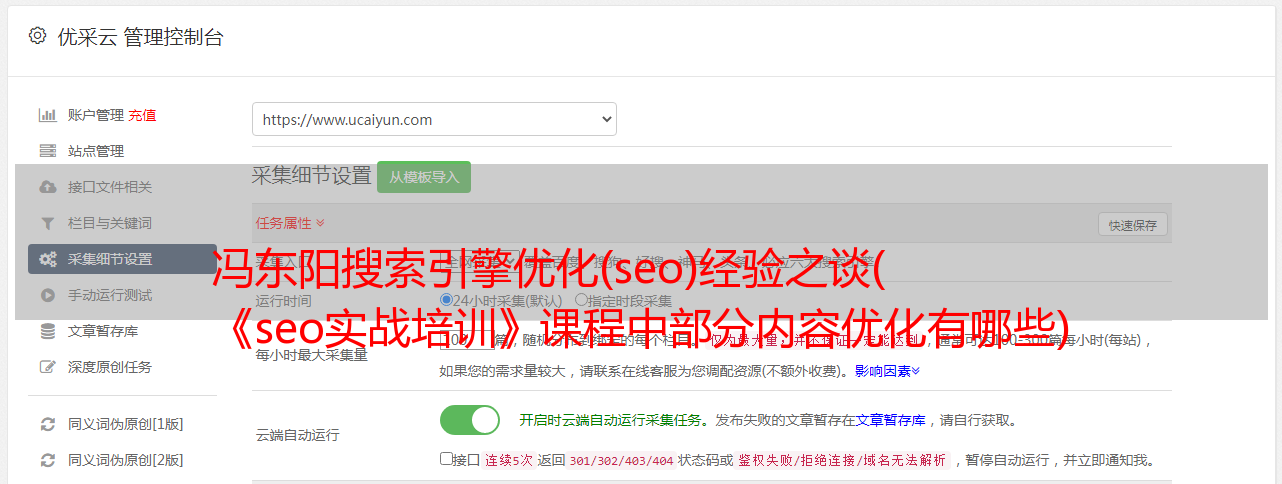 优采云 发布时间: 2021-12-04 18:17冯东阳搜索引擎优化(seo)经验之谈(