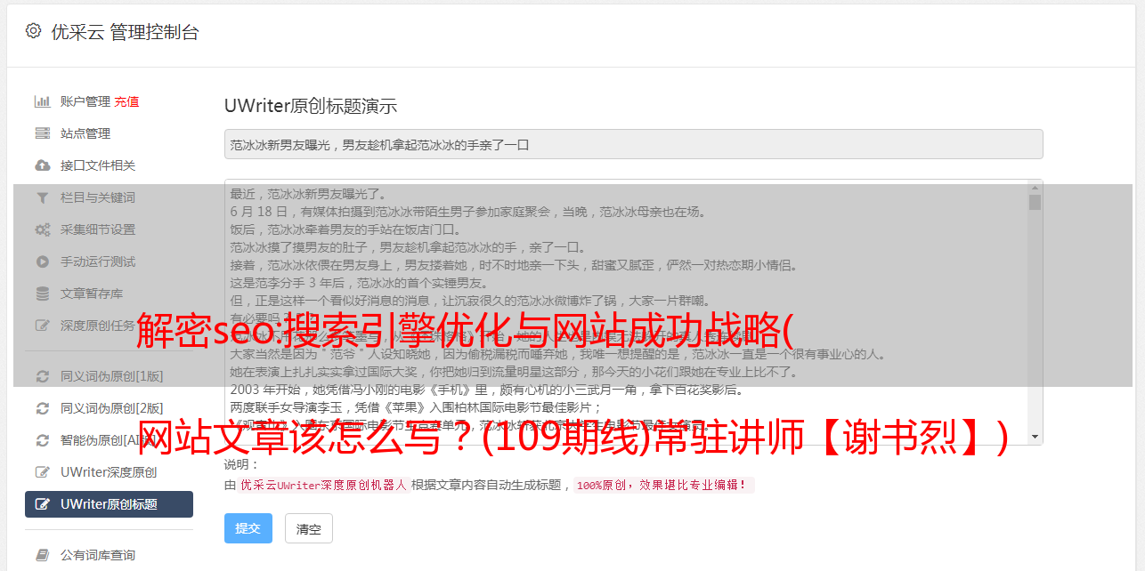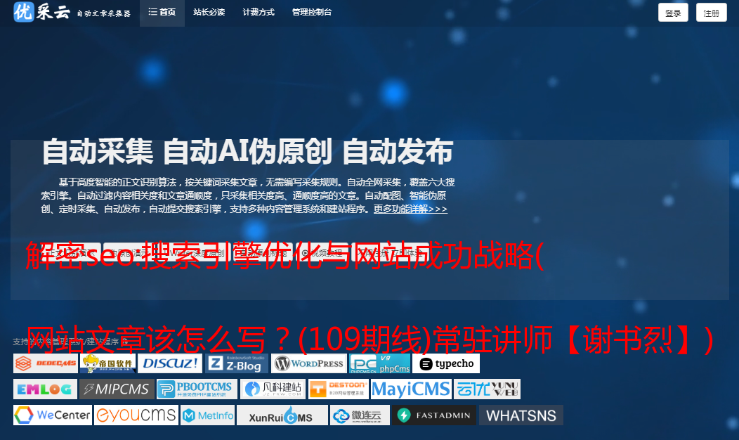 解密seo:搜索引擎优化与网站成功战略( 网站文章该怎么写?(109期线)常驻讲师【谢书烈】)