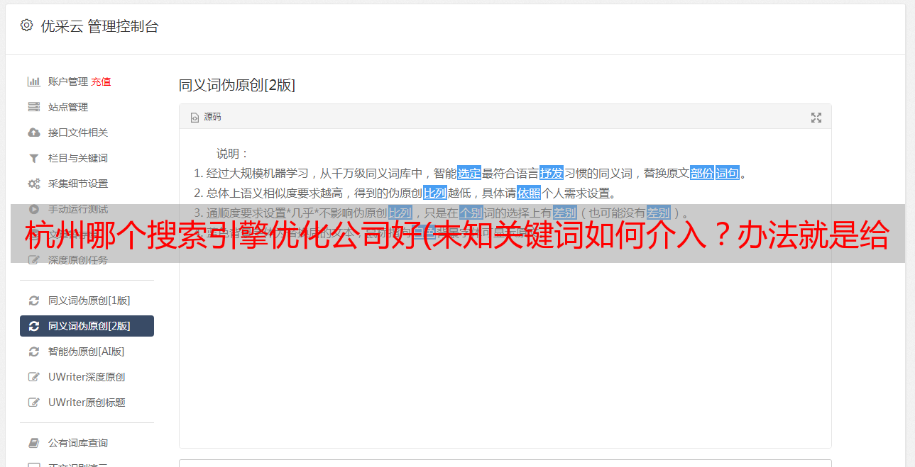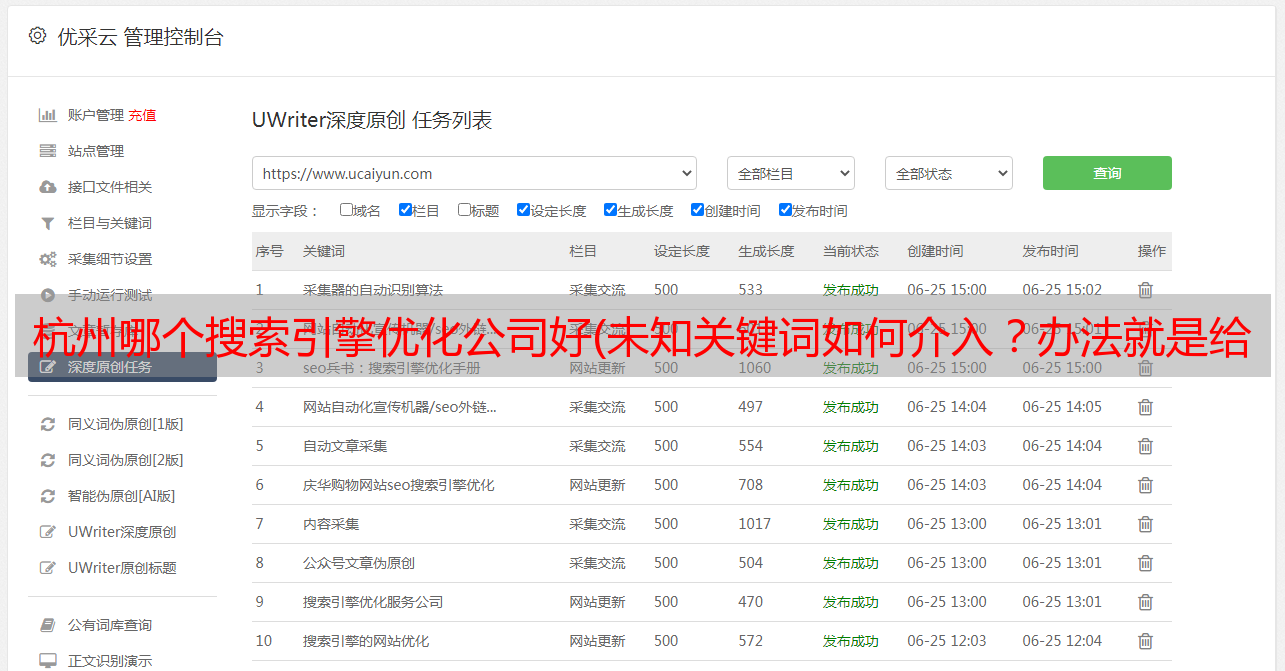 优采云 发布时间: 2021-12-05 00:00杭州哪个搜索引擎优化公司好(未知关键词如何介入?办法就是给你的后台发一个)