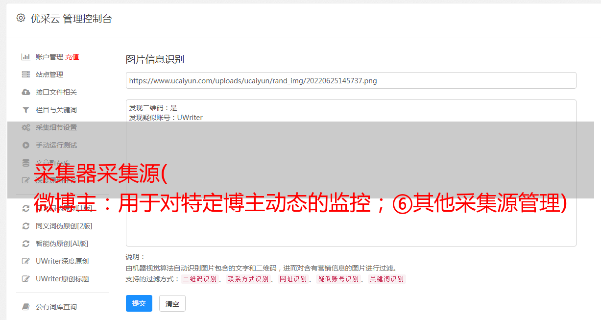 微博主:用于对特定博主动态的监控;⑥其他采集源管理)