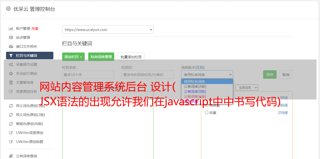 网站内容管理系统后台 设计( JSX语法的出现允许我们在javascript中中书写代码)