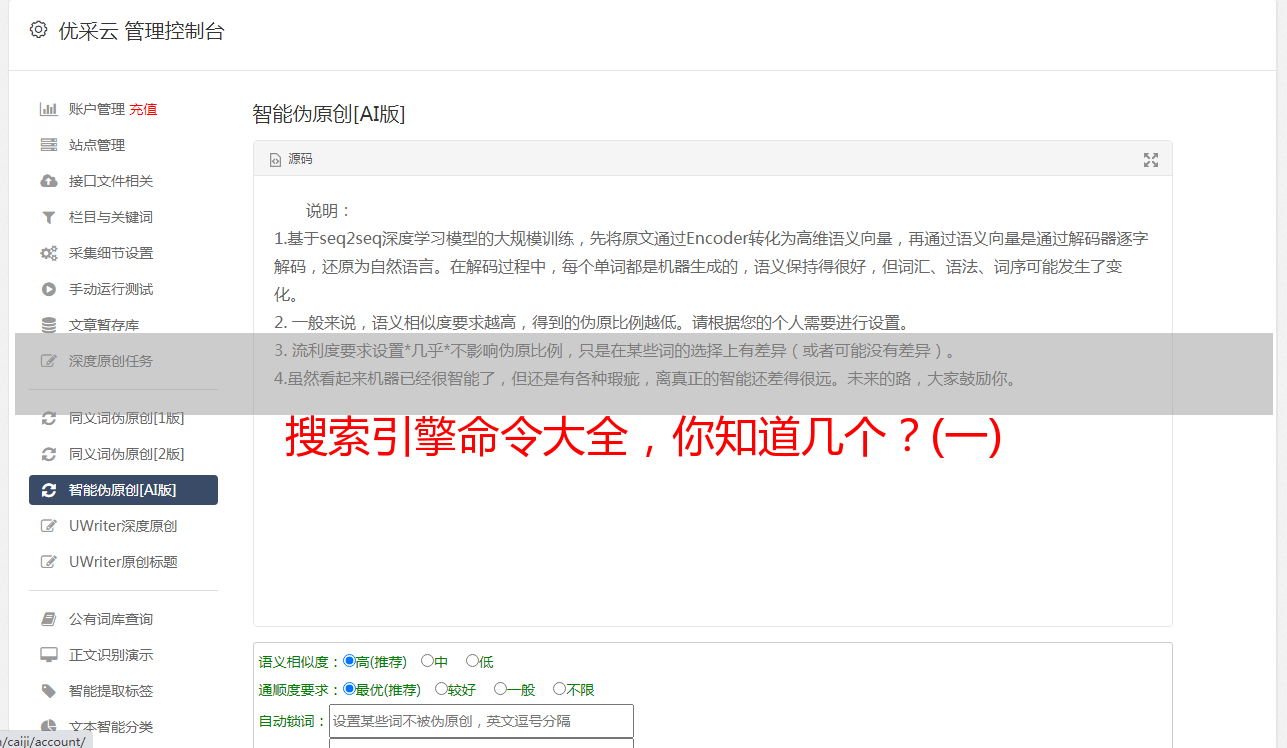 4、 inurl inurl:该命令用于搜索查询词出现在url中的页面。 bd和Google都支持inurl命令。 inurl命令支持中文和英文。例如,搜索:inurl:搜索引擎优化返回的结果是URL URL中收录“搜索引擎优化”的所有页面。由于关键词出现在网址中会对排名产生一定影响,因此请使用inurl:搜索来更准确地找到竞争对手。 5、 inanchor inanchor:该命令返回的结果是导入在链接的锚文本中收录搜索词的页面。百度不支持inanchor。例如,当在Google:inanchor:click上搜索时,返回的结果页面本身不一定收录四个单词“ click here”,而是四个单词“ click here”出现在这些页面的链接的锚点文本中。它可以用来寻找特定的关键词竞赛,而这些竞赛者通常都进行过SEO。在竞争对手的页面上研究外部链接,您可以找到许多链接资源。