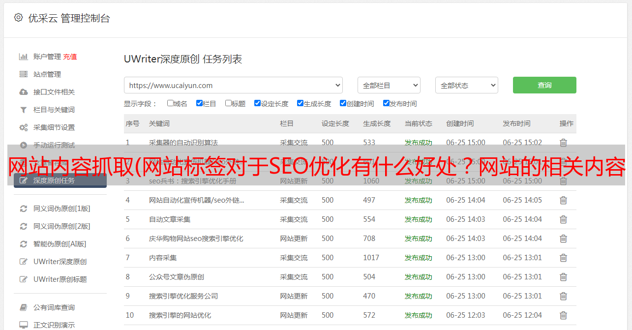 优采云 发布时间: 2021-12-05 04:05网站内容抓取(网站标签对于SEO优化有什么好处?网站的相关内容