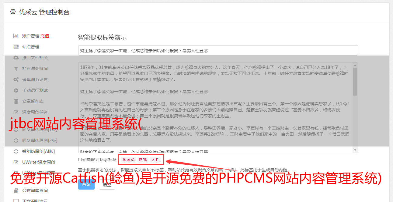 jtbc网站内容管理系统( 免费开源Catfish(鲶鱼)是开源免费的PHPCMS网站内容管理系统)