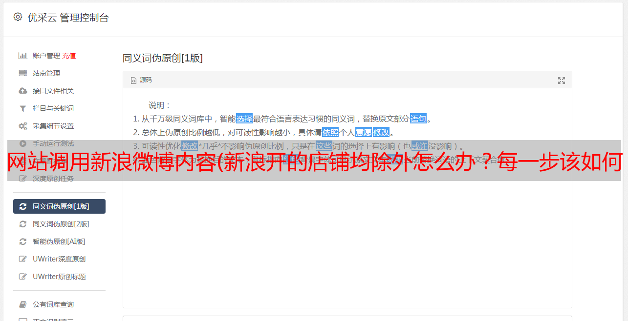 优采云 发布时间: 2021-12-05 18:00网站调用新浪微博内容(新浪开的店铺均除外怎么办?每一步该如何操作