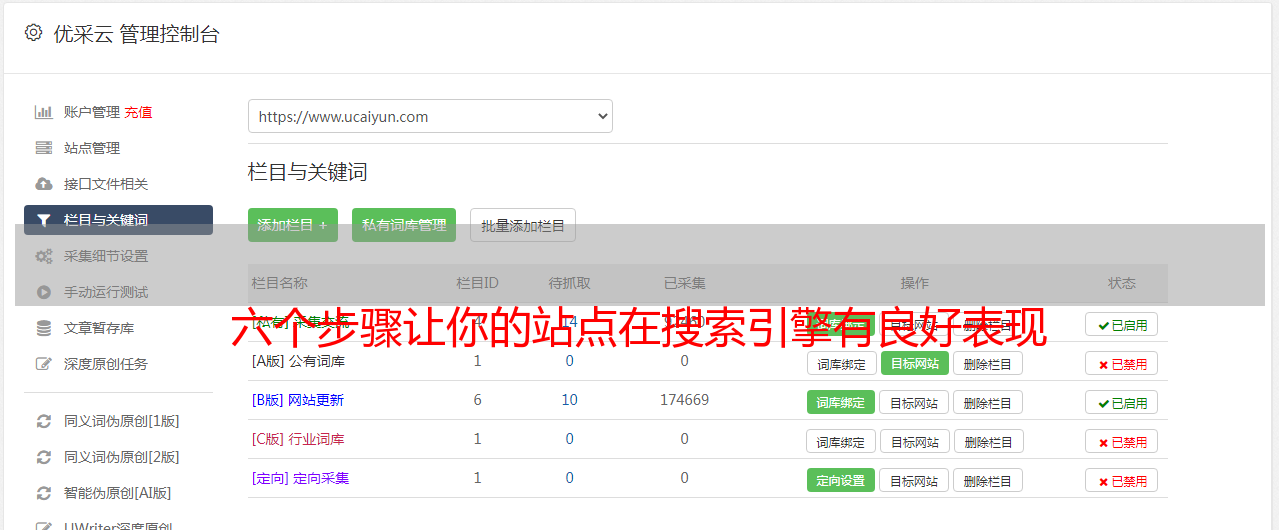 查看SEO对搜索引擎的影响,并通过站点了解收录并更新站点的状态:您的域名。为了更好地实现与搜索引擎的对话,建议使用百度网站管理员平台,Google管理员工具,神马网站管理员平台等。