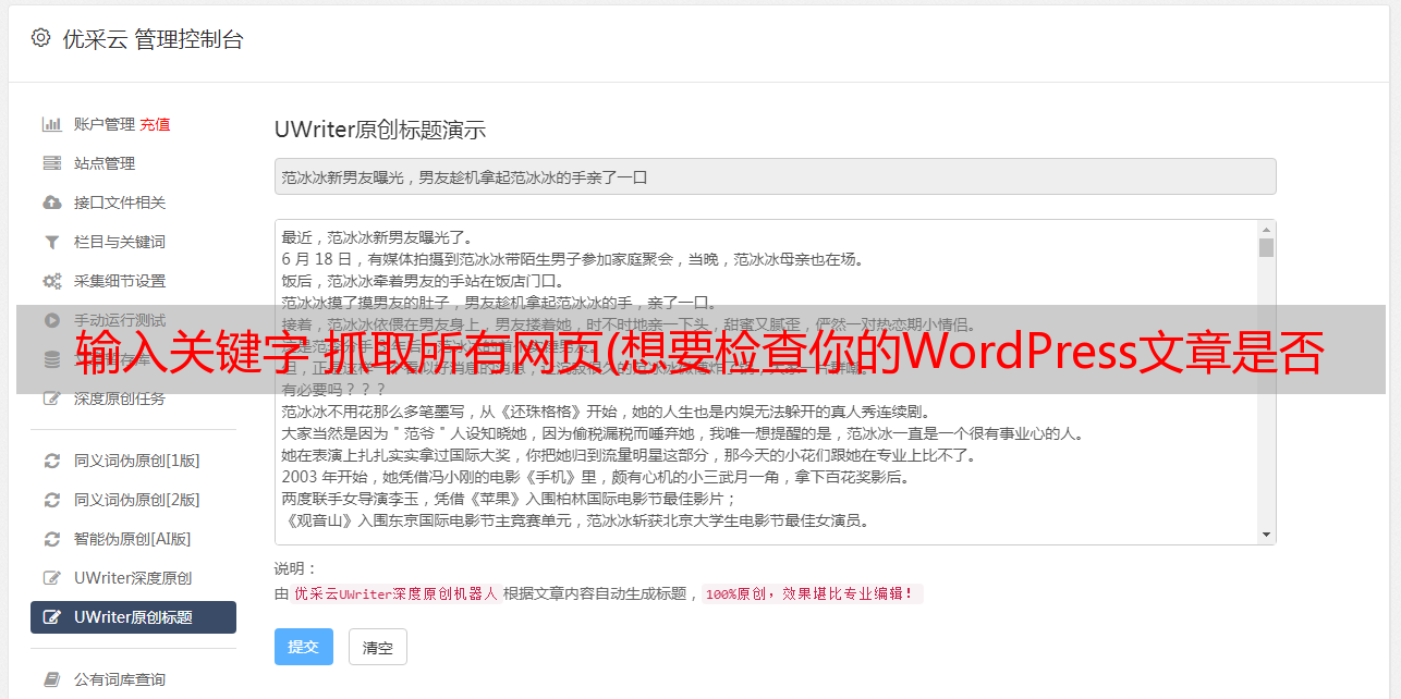 输入关键字 抓取所有网页(想要检查你的WordPress文章是否获得了正确的关键词排名)