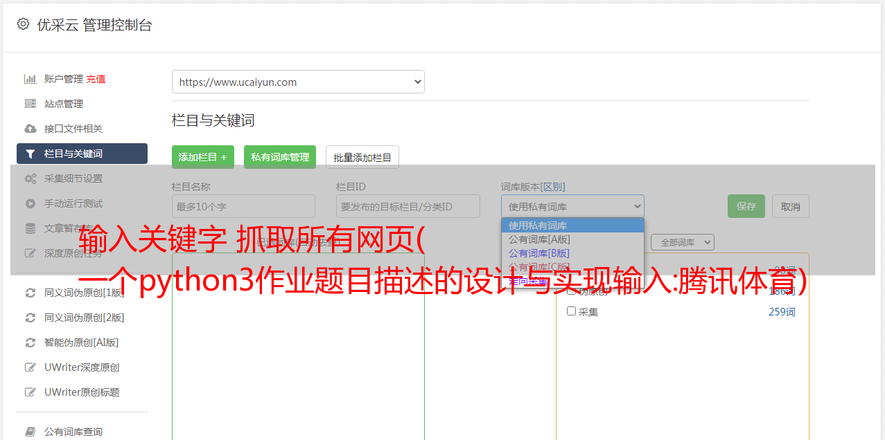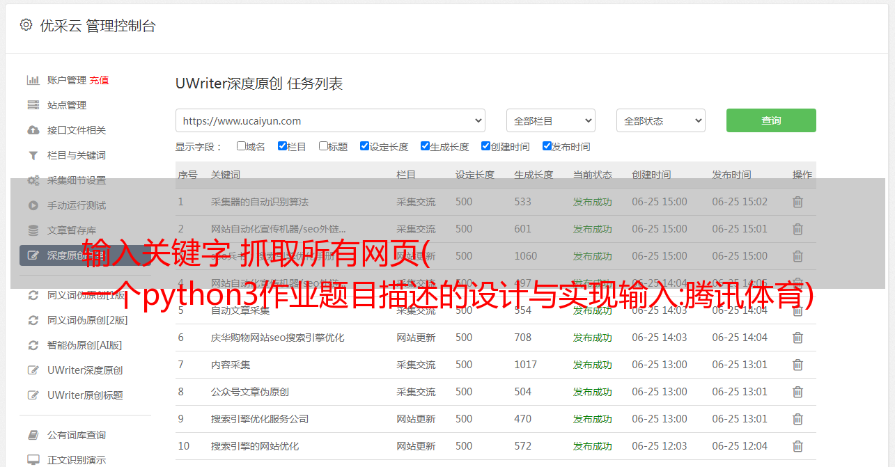 输入关键字 抓取所有网页( 一个python3作业题目描述的设计与实现输入:腾讯体育)