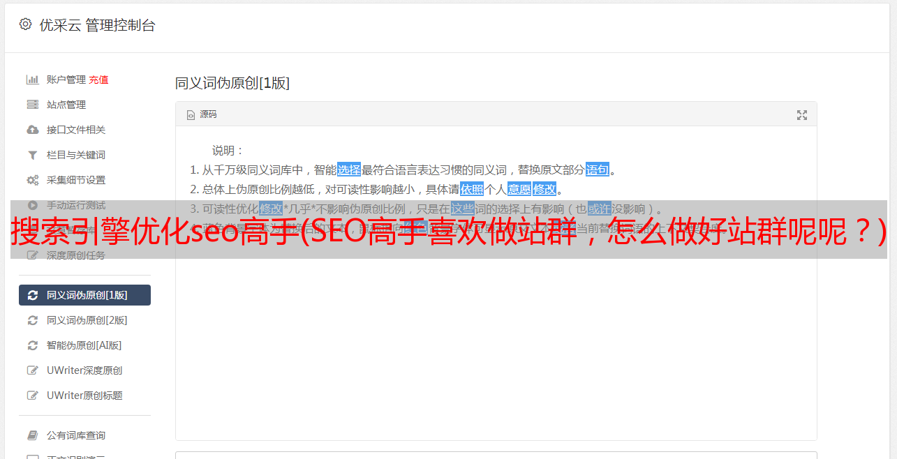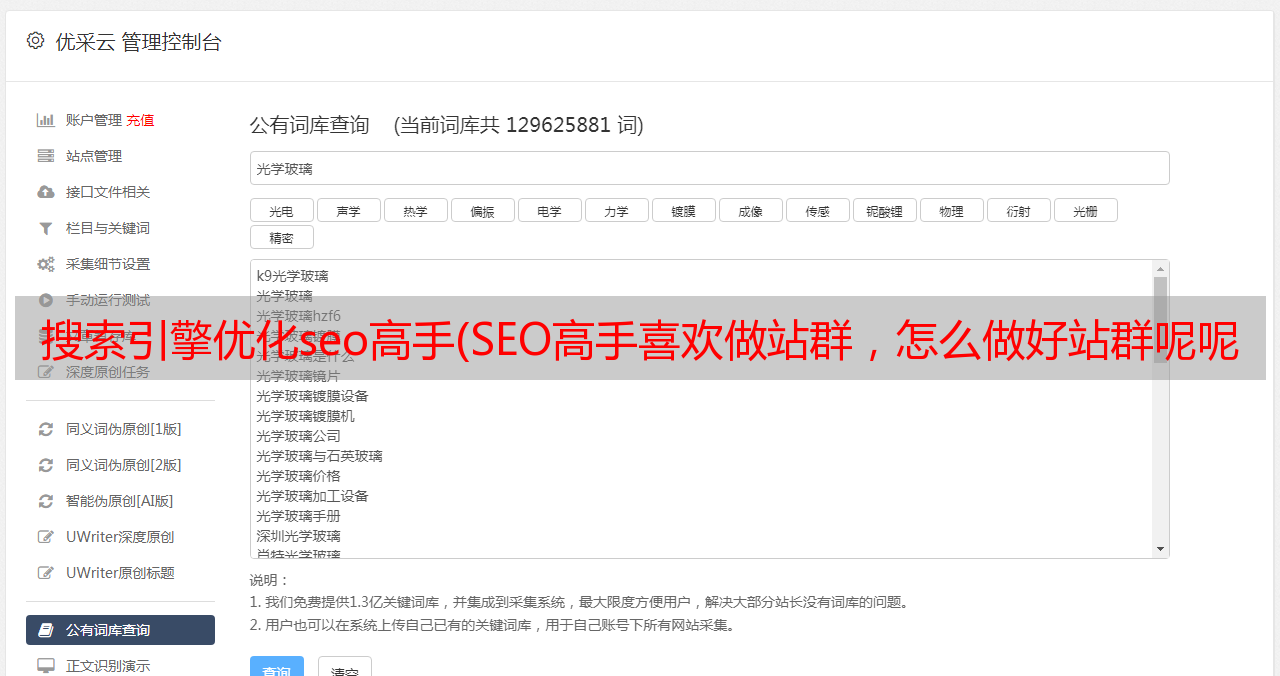 优采云 发布时间: 2021-12-05 21:28搜索引擎优化seo高手(SEO高手喜欢做站群,怎么做好站群呢呢?)