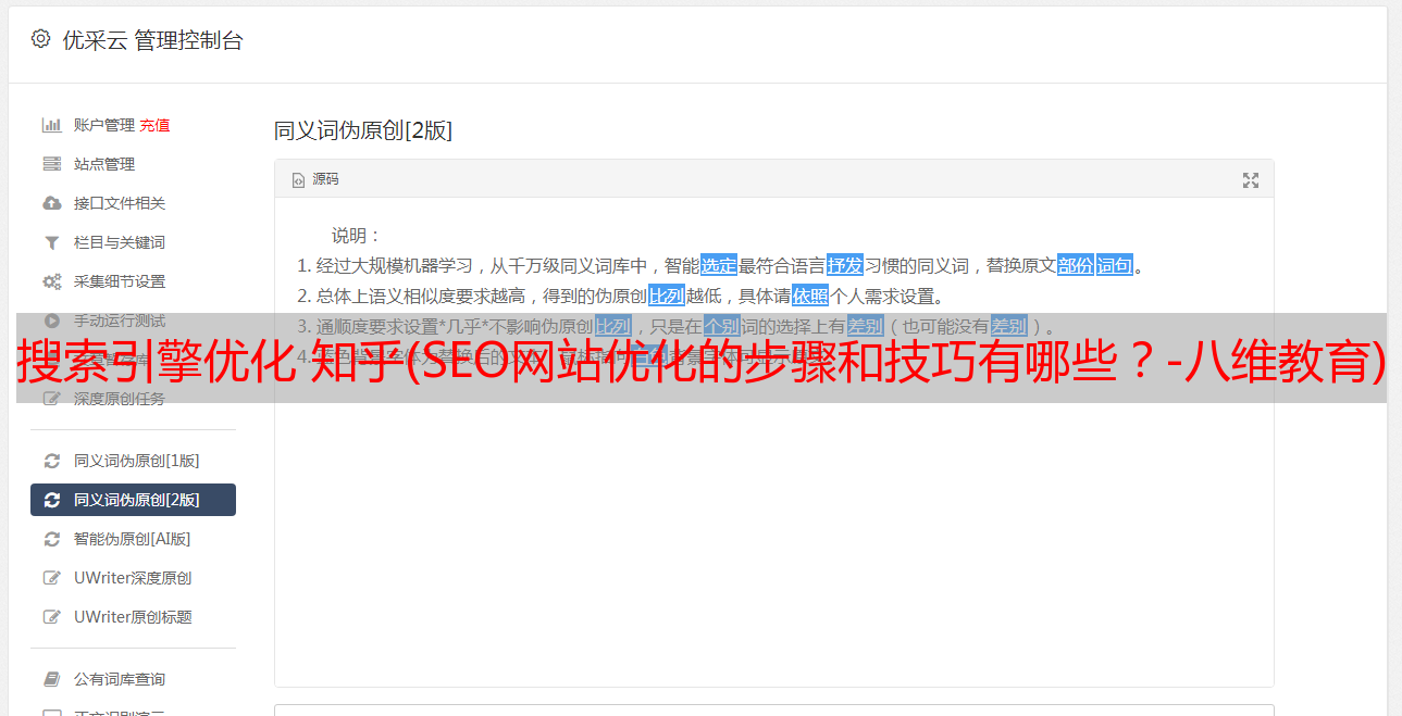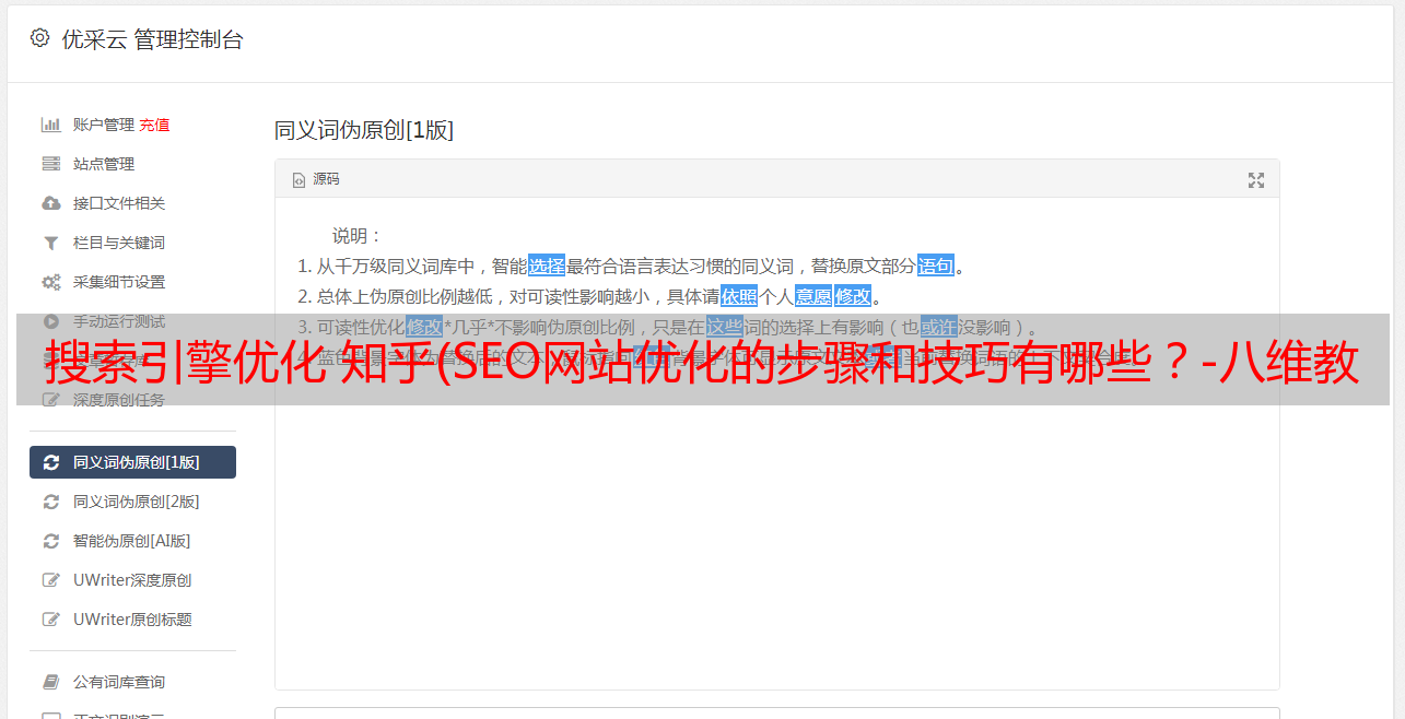 优采云 发布时间: 2021-12-05 23:09搜索引擎优化 知乎(SEO网站优化的步骤和技巧有哪些?-八维教育)