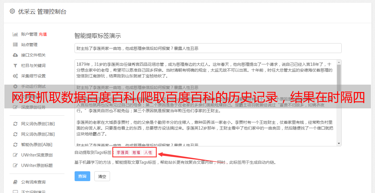 优采云 发布时间: 2021-12-06 05:06网页抓取数据百度百科(爬取百度百科的历史记录,结果在时隔四个月之后再次遇到的对手)