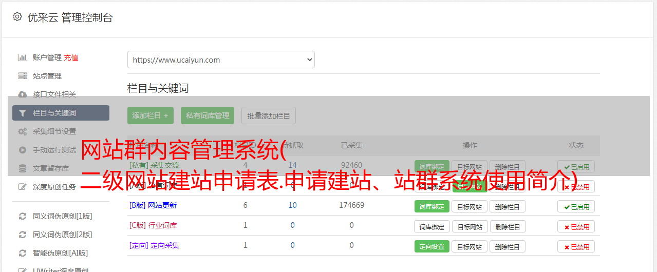 优采云 发布时间: 2021-12-06 11:21网站群内容管理系统(