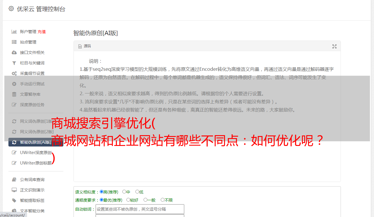 优采云 发布时间: 2021-12-06 13:02商城搜索引擎优化(