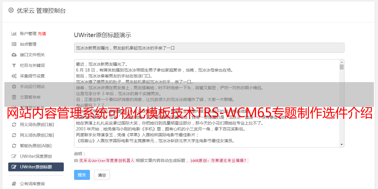 网站内容管理系统可视化模板技术TRS-WCM65专题制作选件介绍