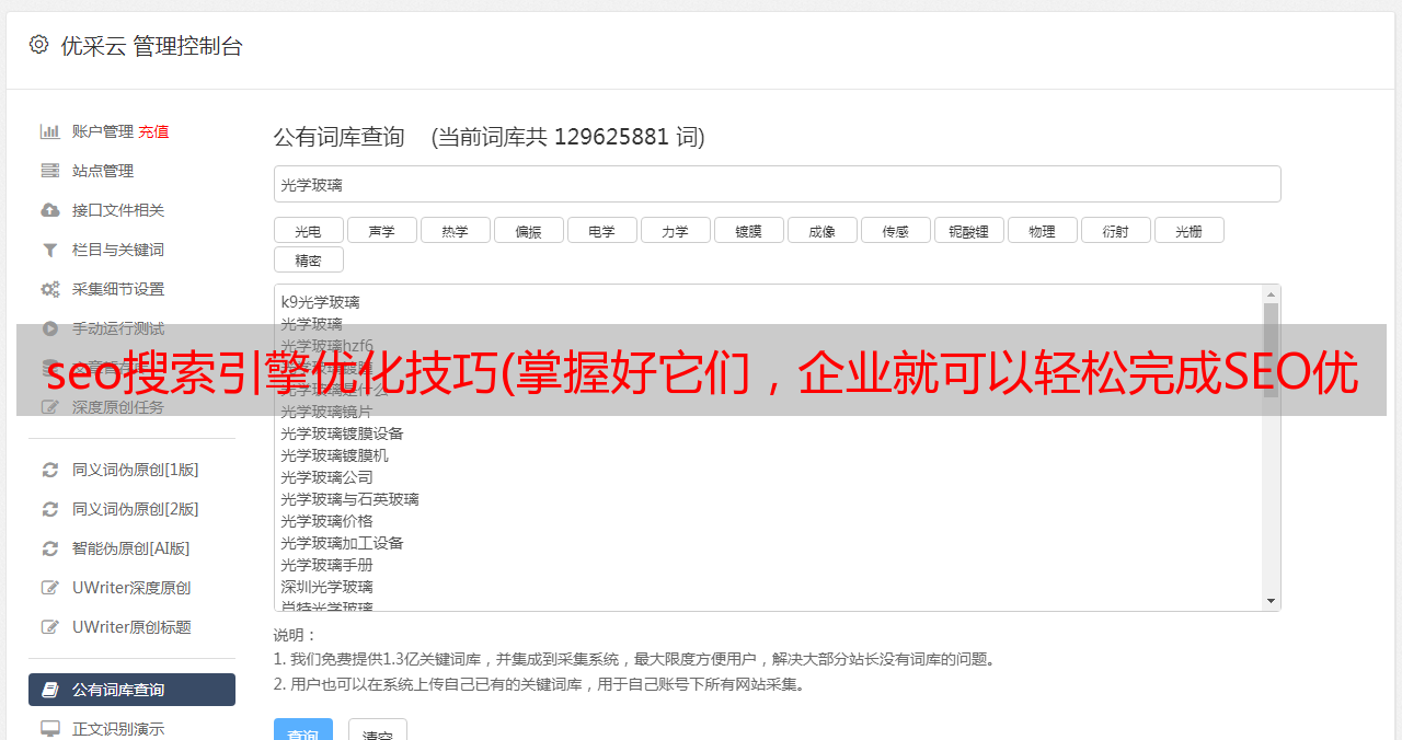 优采云 发布时间: 2021-12-06 13:16seo搜索引擎优化技巧(掌握好它们,企业就可以轻松完成SEO优化!!)