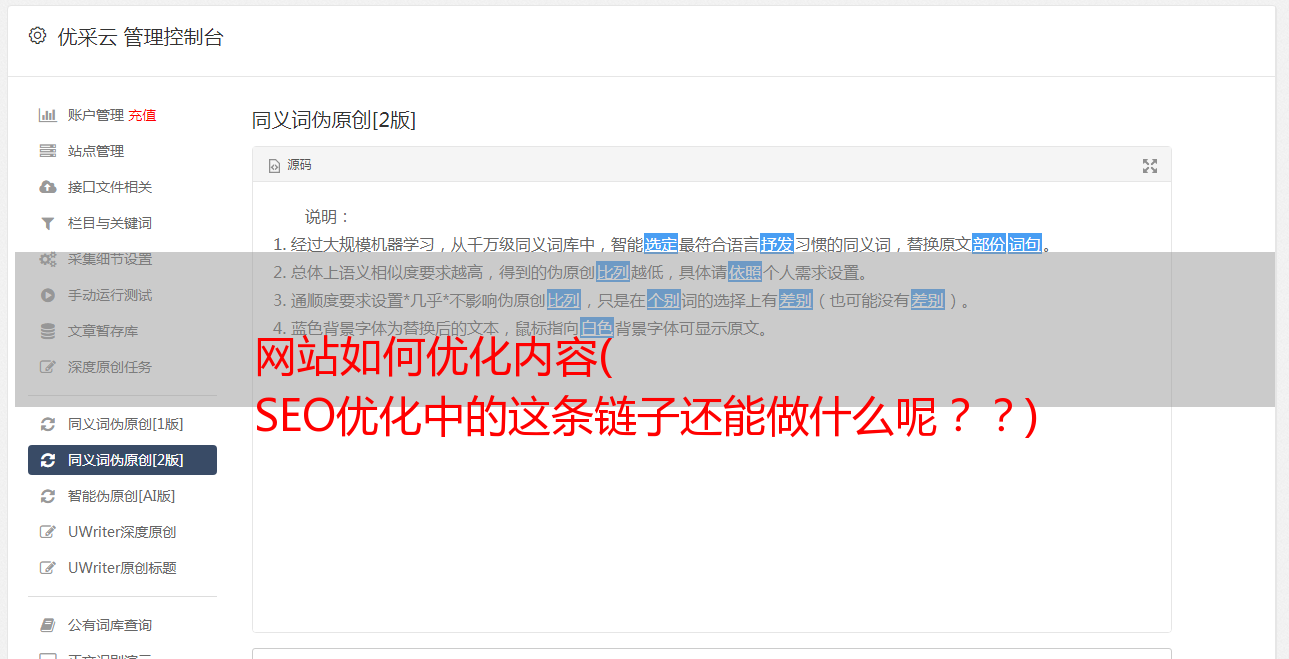 优采云 发布时间: 2021-12-06 15:17网站如何优化内容(