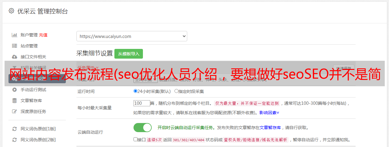 优采云 发布时间: 2021-12-06 16:10网站内容发布流程(seo优化人员介绍,要想做好seoSEO并不是简单)
