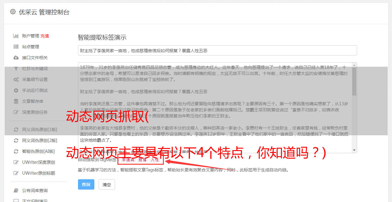 3、 “?” 在动态网页中是 URL 后面的参数。搜索引擎检索存在某些问题。搜索引擎发展之初,“?”后面的动态参数 只要动态参数不是太长,爬取、收录、排名都不是问题。但需要注意的是,如果动态参数过多,搜索引擎蜘蛛会陷入无限循环黑洞的陷阱,所以建议尽量少使用动态参数,或者生成静态或伪静态处理。