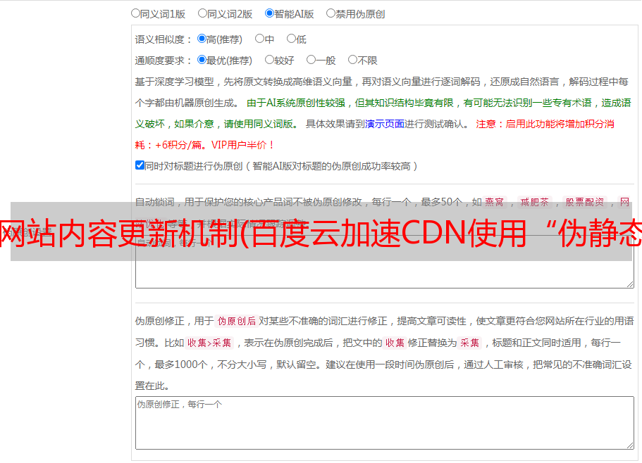网站内容更新机制(百度云加速CDN使用“伪静态拓展”,开启redis和memcached缓存)