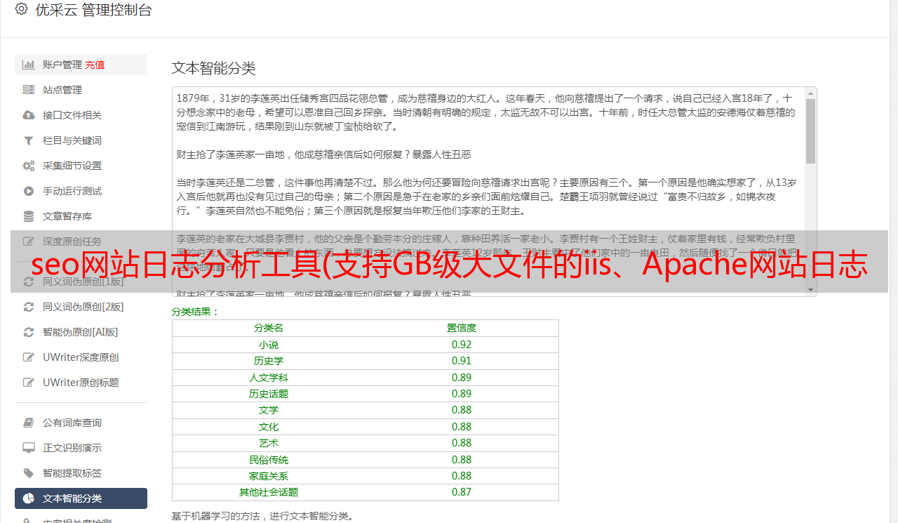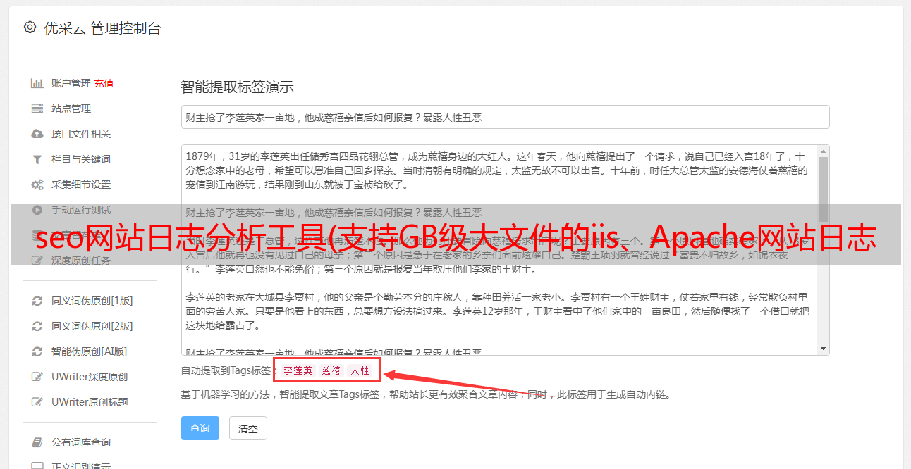 优采云 发布时间: 2021-12-07 00:28seo网站日志分析工具(支持GB级大文件的iis、Apache网站日志分析软件)