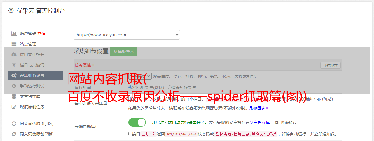 其中,通过资源平台“采集”到的数据,以百度蜘蛛最为流行。