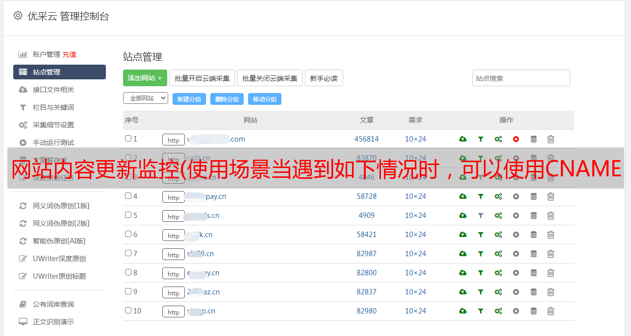 优采云 发布时间: 2021-12-07 03:22网站内容更新监控(使用场景当遇到如下情况时,可以使用CNAME记录监控1.)