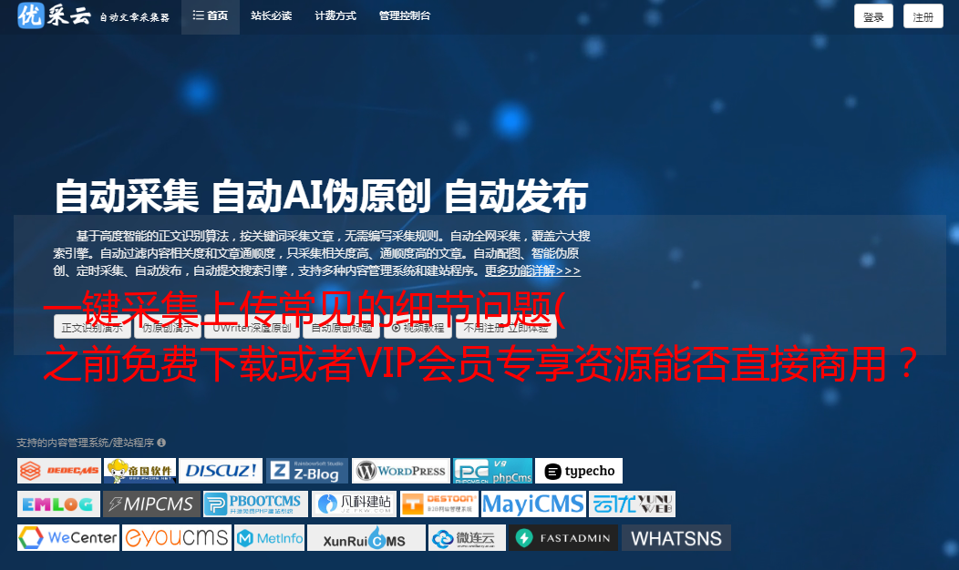 一键采集上传常见的细节问题( 之前免费下载或者VIP会员专享资源能否直接商用?(组图))