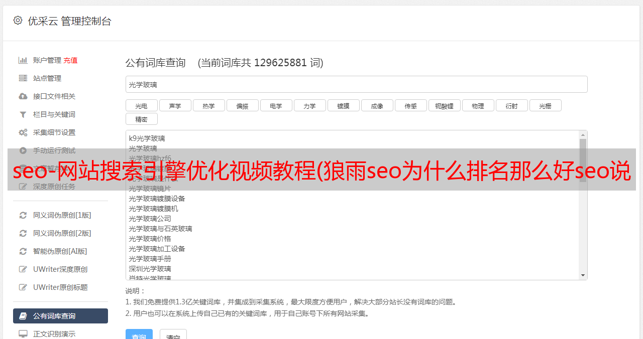 优采云 发布时间: 2021-12-07 13:44seo-网站搜索引擎优化视频教程(狼雨seo为什么排名那么好seo说明了什么:狼雨seo教程