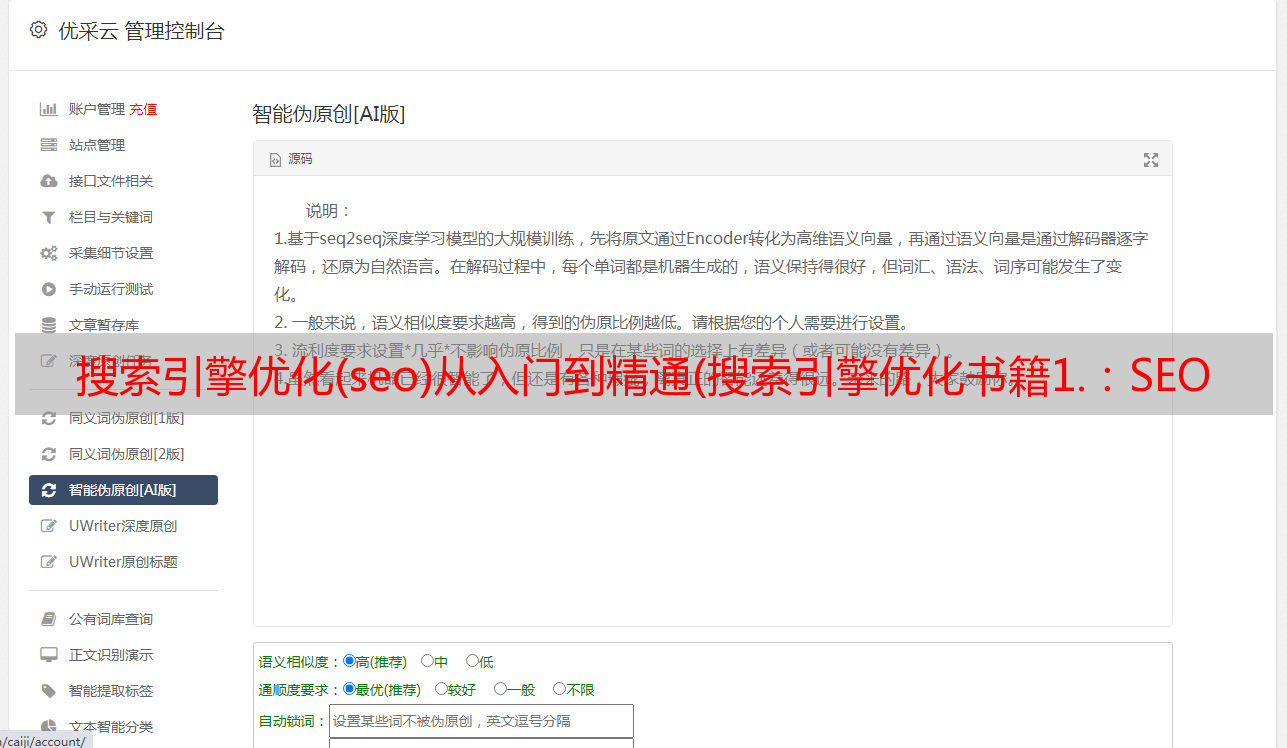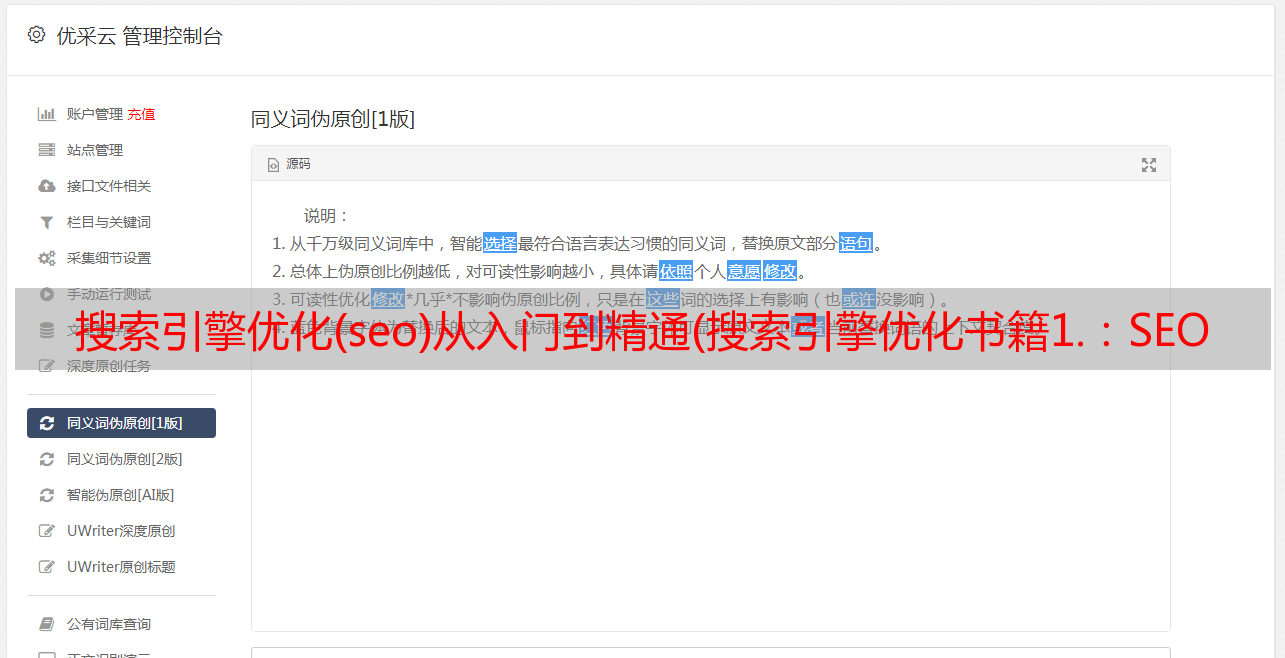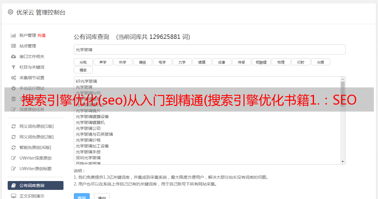 优采云 发布时间: 2021-12-07 19:07搜索引擎优化(seo)从入门到精通(搜索引擎优化书籍1.:SEO基础介绍搜索引擎指南的无耻插件)