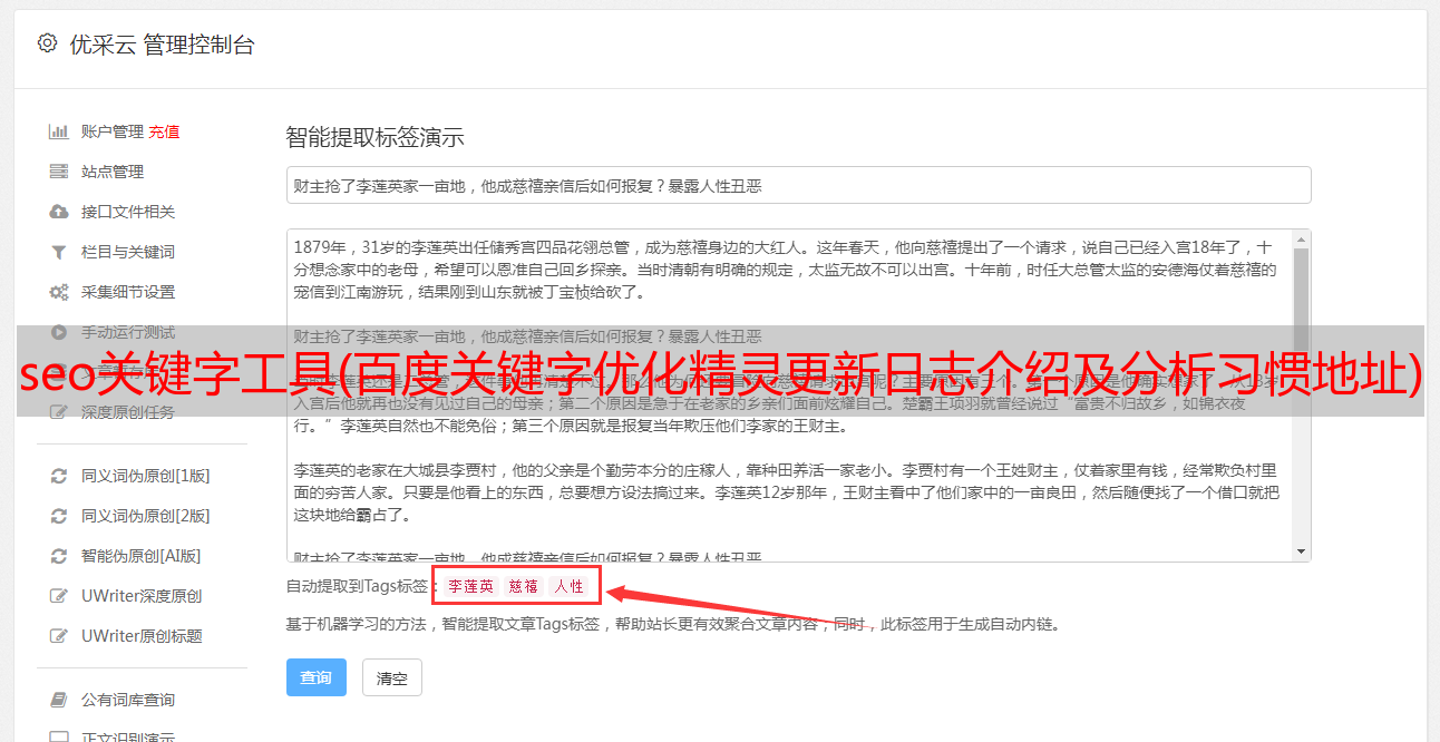 seo关键字工具(百度关键字优化精灵更新日志介绍及分析习惯地址)