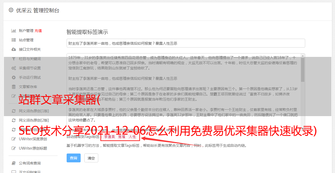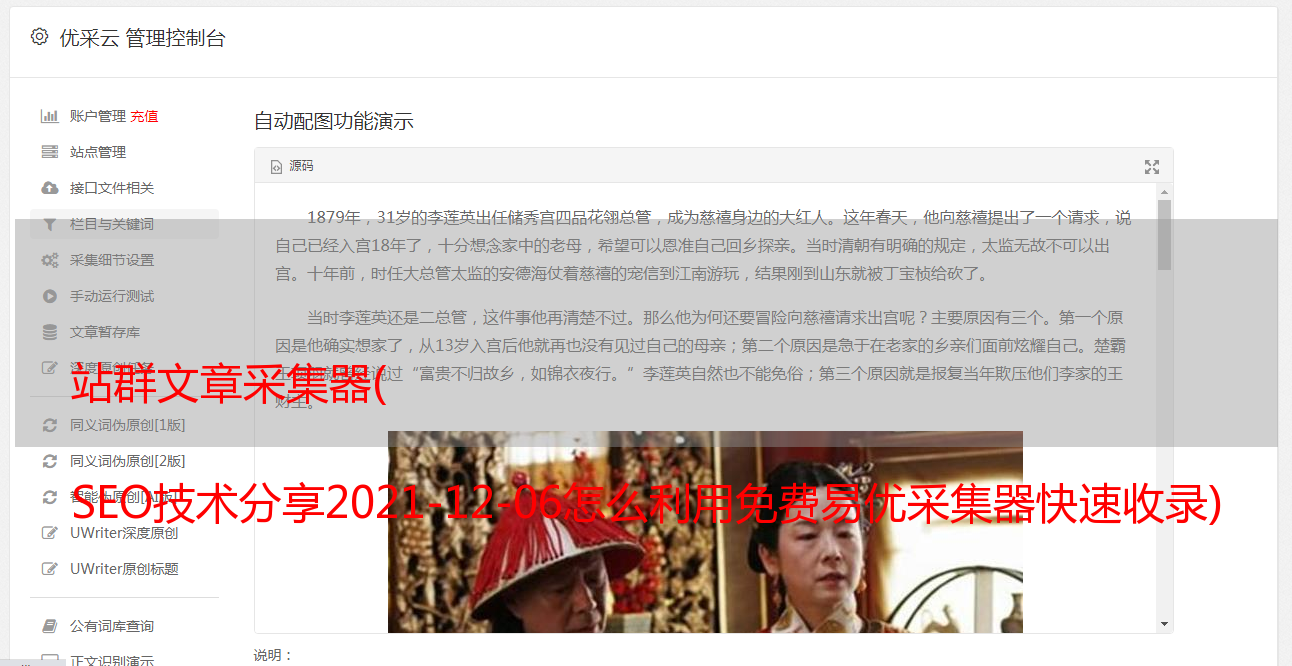 站群文章采集器( SEO技术分享2021-12-06怎么利用免费易优采集器快速收录)