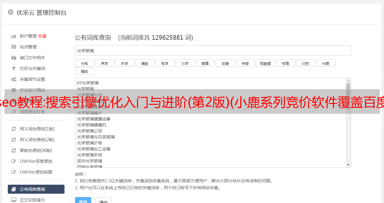 优采云 发布时间: 2021-12-08 08:03seo教程:搜索引擎优化入门与进阶(第2版)(小鹿系列竞价软件覆盖百度、360、搜狗、神马四大搜索平台