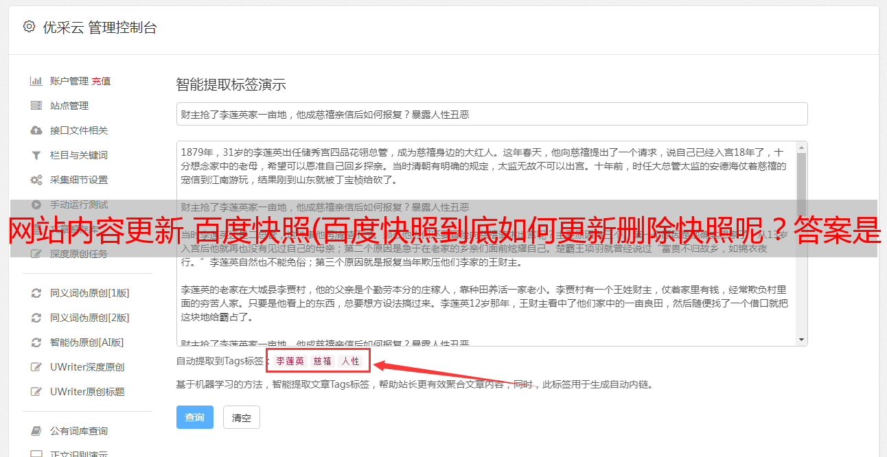 优采云 发布时间: 2021-12-08 10:15网站内容更新 百度快照(百度快照到底如何更新删除快照呢?答案是什么?
