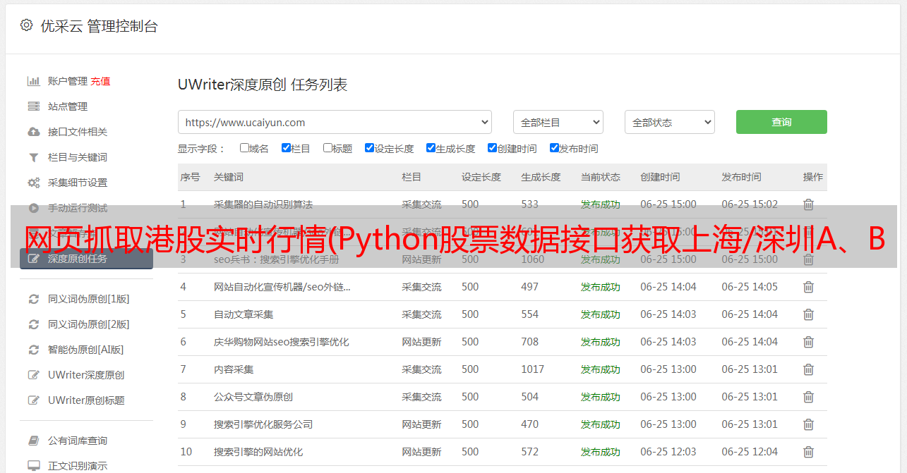 优采云 发布时间: 2021-12-08 16:02网页抓取港股实时行情(Python*敏*感*词*接口获取上海/深圳A、B股近期成交量前10)