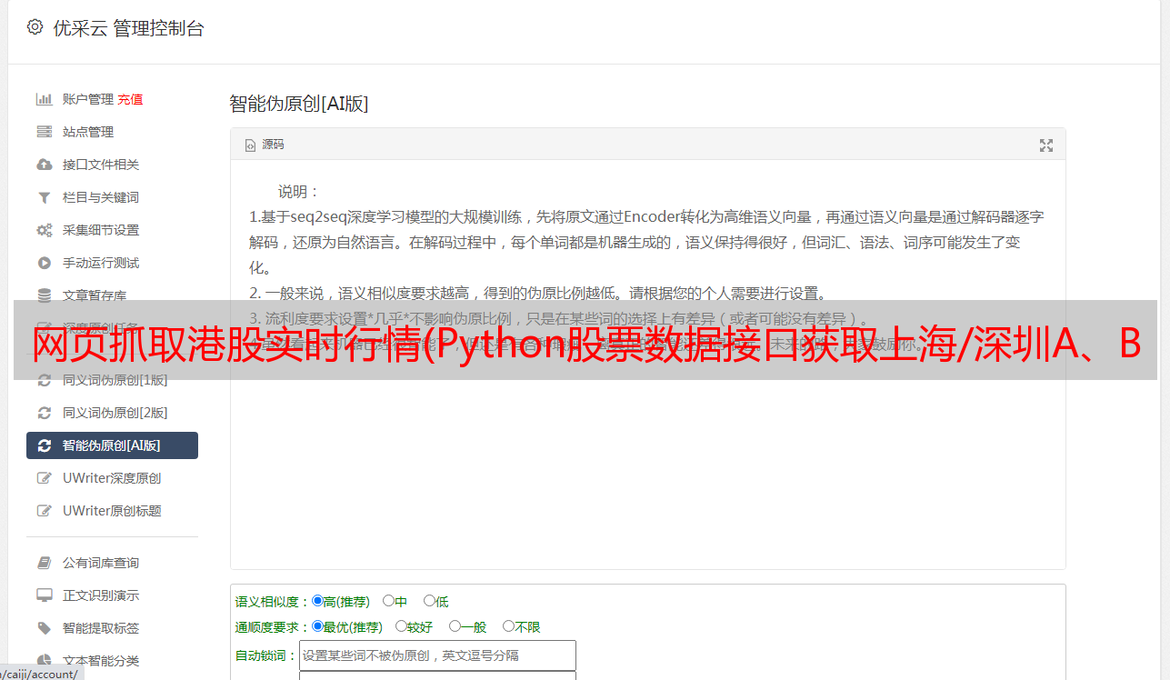 网页抓取港股实时行情(Python*敏*感*词*接口获取上海/深圳A、B股近期成交量前10)