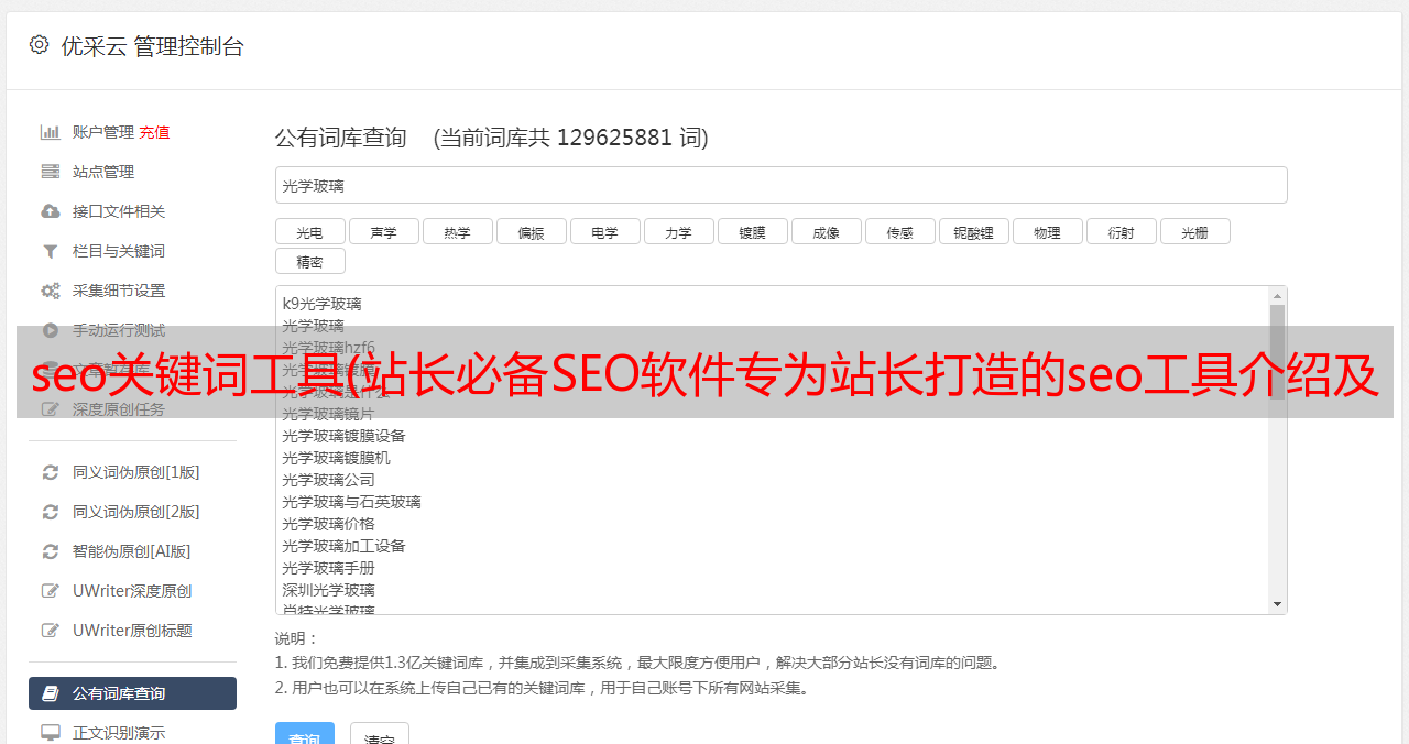 优采云 发布时间: 2021-12-08 17:06seo关键词工具(站长必备SEO软件专为站长打造的seo工具介绍及功能)